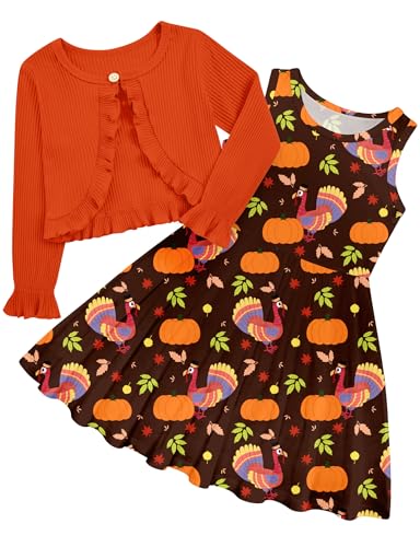 5T 6T Thanksgiving Dresses for Toddler Girls Turkey Cotton Long Sleeve Dresss Size 5 6 Casual Ruffle Cardigan Daughter Festival Clothes