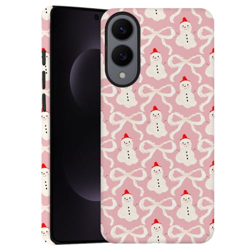 DAIZAG Case for Samsung Galaxy S25 Edge,Christmas Snowman Pink Bow Phone Case Durable Frosted Double-Layer Protection Cover for Women Girl