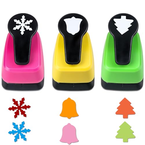 Snowflake Punch 1 inch Hole Punch Shape Christmas Punches Snowflake Paper Puncher Bell Puncher Christmas Tree Punches for Scrapbooking Cardstock Arts DIY Projects- 3 Pcs Crafts Punchers