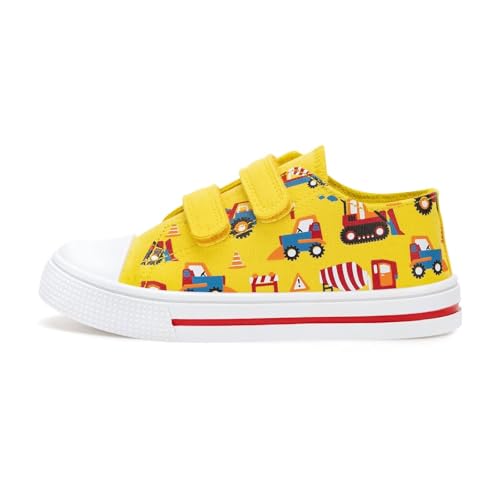 EUXTERPA Kids Toddler Sneakers Boys Canvas Shoes Walking Sneaker with Easy Fasten Strap, Yellow Bulldozer, Toddler Size 10