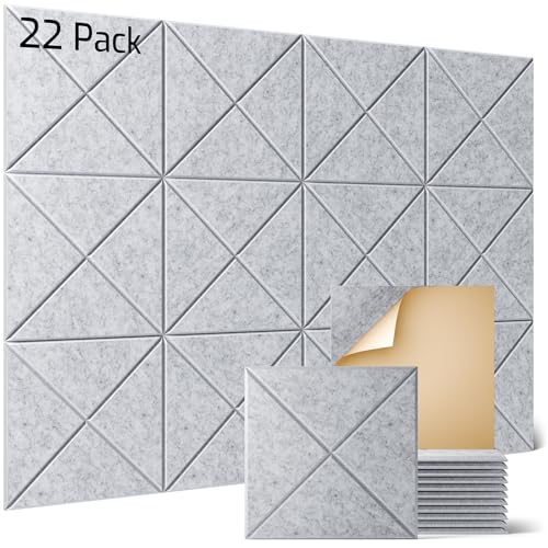 Sonicism 22 Pack X-Lined Acoustic Panels with Self-Adhesive, 12"X 12"X 0.4" Sound Proof Foam Panels, Decorative Soundproof Wall Panels, Sound Absorbing Tile for Home & Offices, Silver Gray