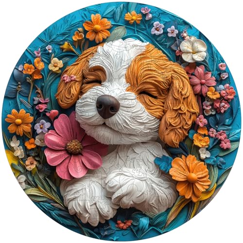 Jiroinlly Wooden Puzzle for Adults - 3D King Charles Spaniel Dog Wooden Jigsaw Puzzles 200 Piece, Unique Shapes Family Reunion Puzzle for Adults, Best Gifts for Family Friends Medium, 11.2x11.2 in