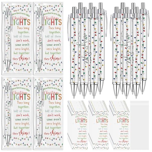 Sayglossy 50 Sets Coworker Christmas Gift Bulk Employee Appreciation Ballpoint Pen with Inspirational Coworkers Are Like Christmas Light Cards for Office Staff Team Teacher