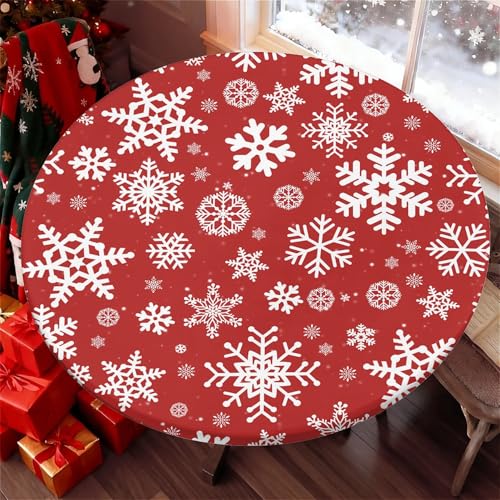 Yesad Round Table Cover for Round Tables 36"-70", Fitted Tablecloth with Elastic for Indoor Outdoor Party Holiday, 52inch, Christmas Snow