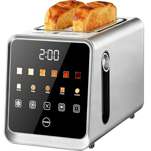 Touch Screen Toaster 2 Slice Stainless Steel Smart Digital Toasters with Single Slot Toasting Memory Function 5 Bread Types & 6 Shade Settings 1.5" Toasters 2 Slice Wide Slot 900W