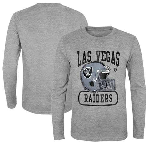 NFL Kids Youth 8-20 Head to Head Heather Gray Primary Logo Officially Licensed Football Long Sleeve Crewneck Cotton T-Shirt (Las Vegas Raiders, 18-20)