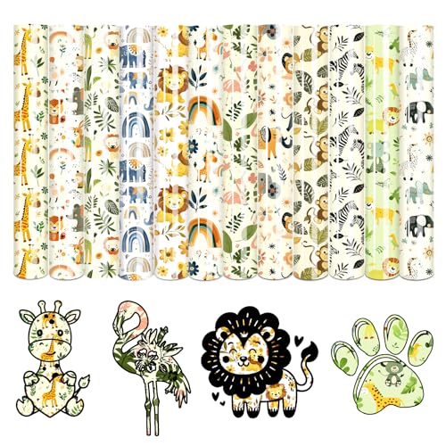 Tintnut Animals Heat Transfer Vinyl -12 Sheets 12"x10"Patterned Iron on Vinyl for T-Shirts Clothing Bags HTV Vinyl for All Cutting Machine