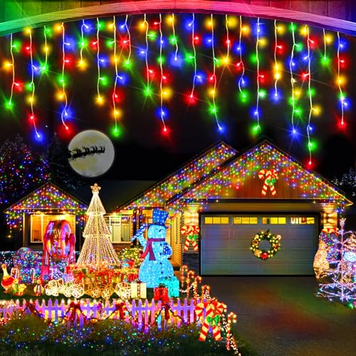 Christmas Lights Outdoor, 49FT 480 LED Ice Lights for Outside, 90 Drops Ice String Lights with 8 Modes, Waterproof Timer & Memory for Outside Decor, Yard, Garden, Eaves, Patio, Party (Multicolor)