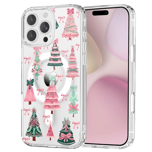 OFQKOAKS for iPhone 16 Pro Case,Compatible with MagSafe,Cute Festive Christmas Colorful Tree Bow Magnetic Phone Case,Clear Soft Slim Protective Cover for Women Girls