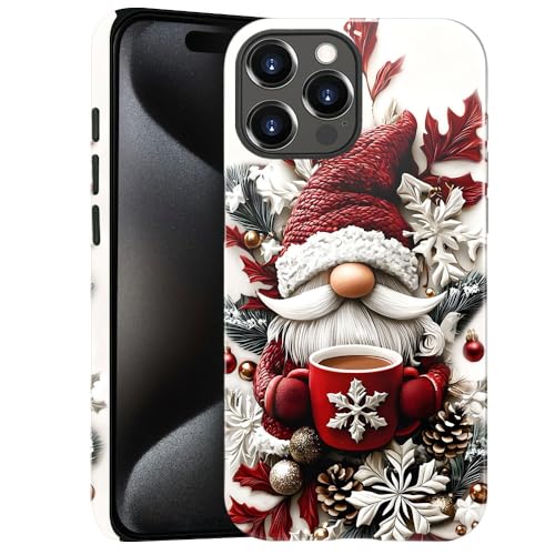 Generic Case for iPhone 14 Pro Max - [Drop Protection Phone Cover] - Glossy Hybrid Case for Girl Women - Gnome with Coffee Christmas