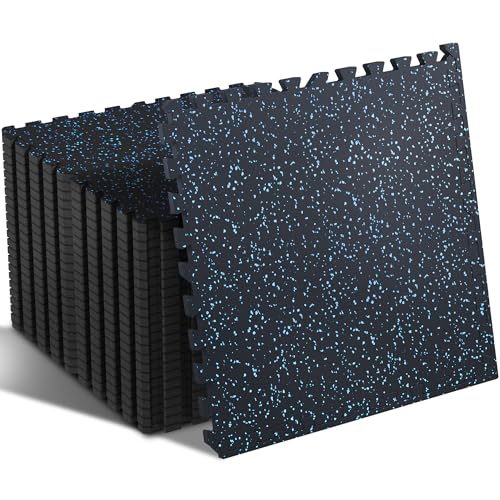 SUPERJARE 0.4'' Thick 24 Pcs 96 Sq Ft Rubber Top Exercise Equipment Mats, High Density EVA Foam Mats with Rubber Top, Interlocking Gym Flooring for Home Gym, Protective Workout Mat, Black/Blue