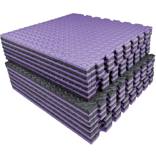 AIRHOP Upgraded 0.79" Extra Thick 48 Sq Ft High-Density Eva Foam Exercise Gym Mats, 12 Pcs Large Interlocking Puzzle Floor Tiles (24"x24") for Home Gym, Black&Purple