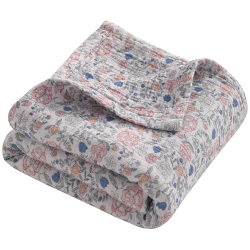 NTBAY 4 Layer Muslin Cotton Toddler Blanket, 30x40 Soft and Breathable Receiving for Newborns and Infants, Perfect for Crib, Stroller, Travel, Lightweight Nursery Blanket, Vintage Floral