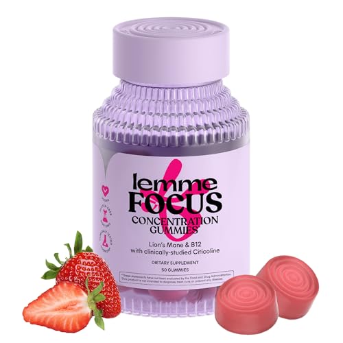 Lemme Focus Concentration & Brain Health Gummies with Cognizin Citicoline, Lion's Mane Mushroom, Vitamin B12 to Support Focus + Concentration - Gluten Free, Caffeine Free, Strawberry (50 Count)