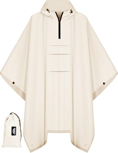 Bruvoalon 3-in-1 Rain Poncho with 1/4 Zip & Chest Pocket, Waterproof, Sunshade, Ground Mat for Adults & Youth Emergency