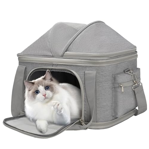 Airline Approved Pet Carrier Soft-Sided Dog Carriers Travel Tote Bag for Small Dogs Cats, Foldable Pet Bag for Puppies Small Animals with Pockets (Grey, 16.2" x 11.4" x 13")