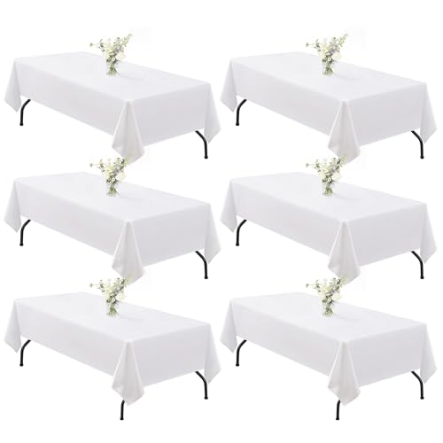 joybest 6 Pack 60 x 120 Inch White Tablecloths for Rectangle Table, Polyester Fabric Table Covers for Wedding, Party, Banquet