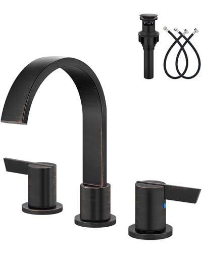 Aolemi Bathroom Faucets 3 Hole,8 Inch Widespread Waterfall Bathroom Sink Faucet,2 Handles Vanity Faucet with Pop-up Drain and Supply Hose,Oil Rubbed Bronze