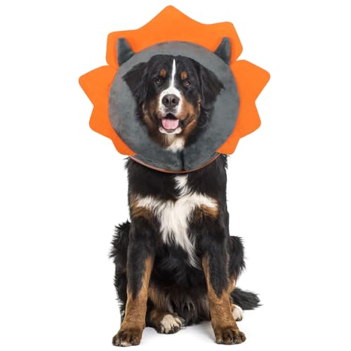 IEUUMLER Inflatable Recovery Dog Collar, Protective Donut Cone, Adjustable Soft Collar for Dog and Cat After Surgery Prevent from Biting & Scratching EU002 - Grey Demon S