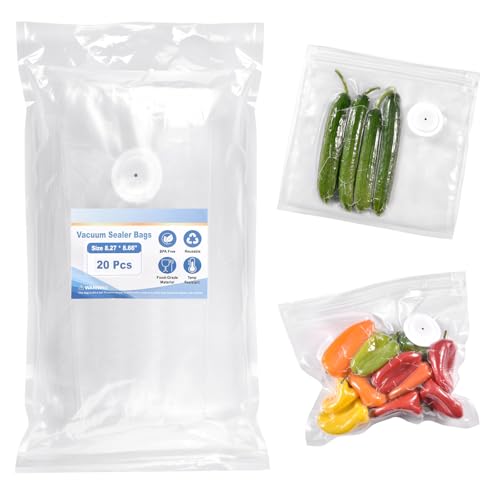 Reusable Vacuum Sealer Bags for Food, 20 BPA-Free Small (8 x 8in) Food Storage Bags, Freezer, Odor-Resistant, Leak-Proof, Compatible with Vacuum Sealers