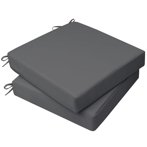 AAAAAcessories Outdoor Seat Cushions for Chairs, Waterproof, Fade-Resistant, 20" x 18" x 3", Patio Furniture Replacement Cushions, Set of 2, Dark Gray