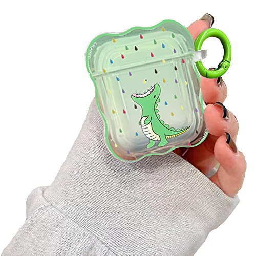 LALAPOPO Compatible with Airpods Case Dinosaur, Cute Case with Keychain for Women Girls Clear Thin Soft Silicone Kawaii Cartoon Protective Cover for AirPods 2&1 Charging Case