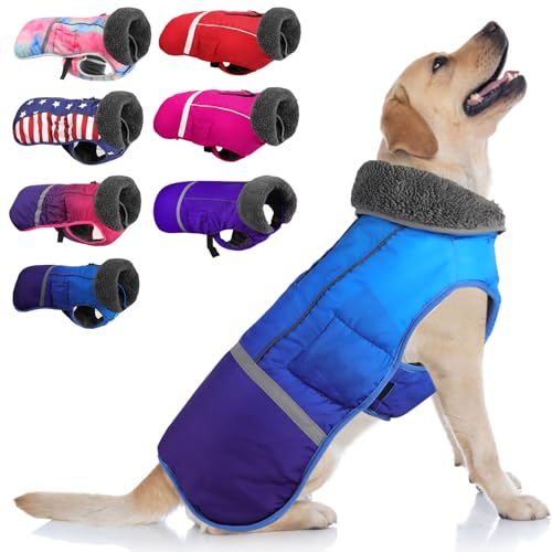 Doglay Dog Coat, Waterproof Dog Jacket Pet Winter Coat for Cold Weather with Thicken Furry Collar, Reflective Puppy Winter Jacket Warm Fleece Lining for Small Medium Large Pets