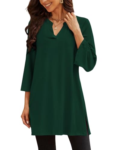 Poetsky Dressy Tops for Women,Blouses Plus Size 3/4 Sleeve Shirts Tunics Tops for Leggings Business Casual Work Outfits Fashion 2025 Fall Tops Flowy(Hot Pink,M)
