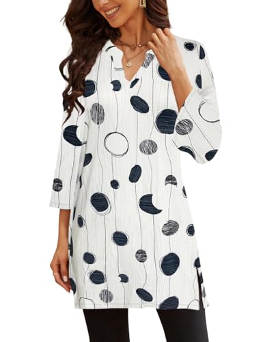 Poetsky Womens Blouses Dressy Casual:Tunic Tops for Women to Wear with Leggings Loose Fit Flowy Winter Blouses Plus Size Evening Party Shirts White Print XXL