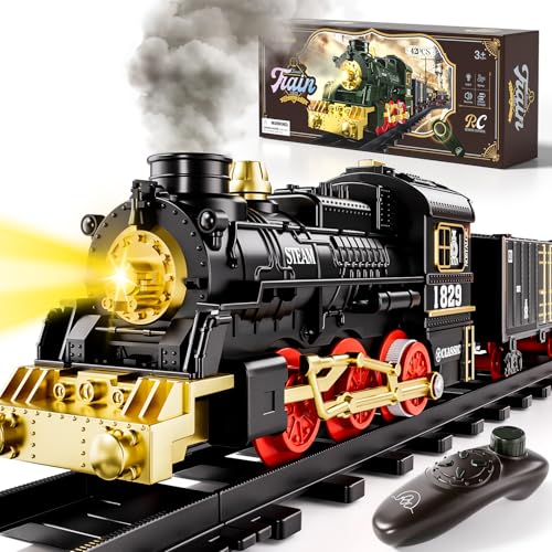 Train Set for Kids 3-5 4-7, Remote Control Train Toys Set with Lights & Sound Spray, RC Train Toys for Under Christmas Tree, Toys Train Set for 3 4 5 6 7 8Years Old Kids Boys Girls