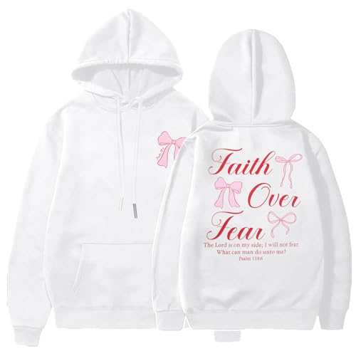 BANGELY Faith Over Fear Hoodie Women Christian Sweatshirt Graphic Christian Religious Sayings Sweater Bible Pullover Tops B-white
