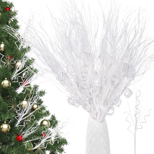 Suncalla 24 Pcs 16.5 Inch Christmas Tree Picks Glitter Artificial Curly Sprays Christmas Floral Stems Branches for Xmas Tree Sticks Garland Ornaments Vase Filler Decorations (White)