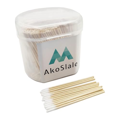 AkoSlale Pointed Cotton Swabs 500 Count - 2.9 Inch Thin Wooden Sticks for Pet Tear Stain Removal, Precision Tapered Swabs for Cat Eye Care, Makeup Detail & Electronics Cleaning, Lint Free