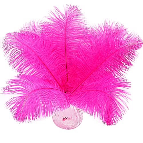 10pcs Natural Hot Pink Ostrich Feathers 14-16inch 35-40cm for Wedding Party Centerpieces, Easter Home Decorations