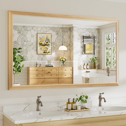60x36 Inch Bathroom Mirror for Wall, Anti-Rust Oak Wood Grain Metal Framed Bathroom Mirrors for Over Sink,Rectangler Mirrors for Bathroom Vanity, Farmhouse, Bedroom, Living Room, Entryway Decor