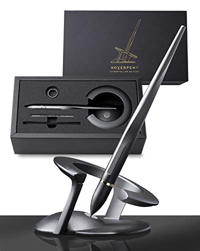 novium Hoverpen Interstellar - Space Black, Ballpoint Pen, 18K Gold-plated Pen Ring, 23.5 Degree Angle, Schmidt Ballpoint Refill, No Spills, No Spotting, No Explosions