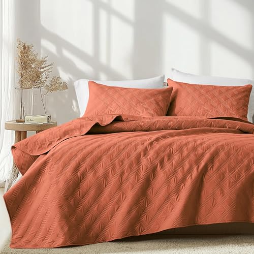 inron Quilt Set King Size, Burnt Orange Microfiber Ultrasonic Cal King Bedspreads, Lightweight Breathable Coverlet, Modern Geometric Pattern Thin Bedding Set for All Season (1 Quilt, 2 Pillow Shams)