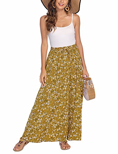 Bluetime Women Elastic Beach Summer Flower Maxi Skirt Bohemian Chiffon Flowy Skirts Long Length (L, Floral12)