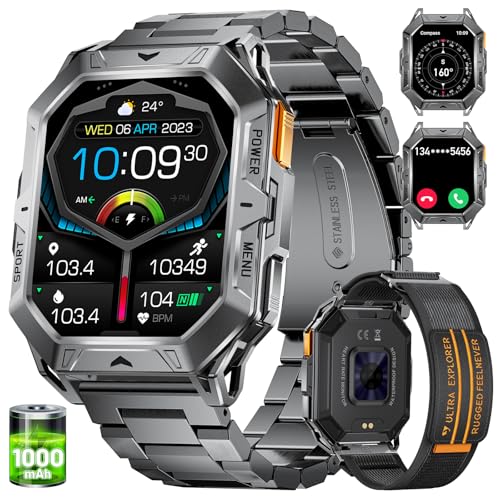 LIGE Smart Watch with 1000 mAh Battery, 2.13" AMOLED Full Touch Screen Military Smart Watches for Men with Make/Answer Call/110 Sports Modes/5ATM Waterproof Watch/Sleep Monitor, iOS Android