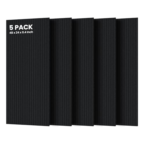 5 Pack Acoustic Panels, 48 x 24x 0.4 Inch Sound Proof Panels for Walls, Premium Wall Sound Absorbing Panels, Decorative Sound Dampening Panels for Media Room, Office and Studio,Black