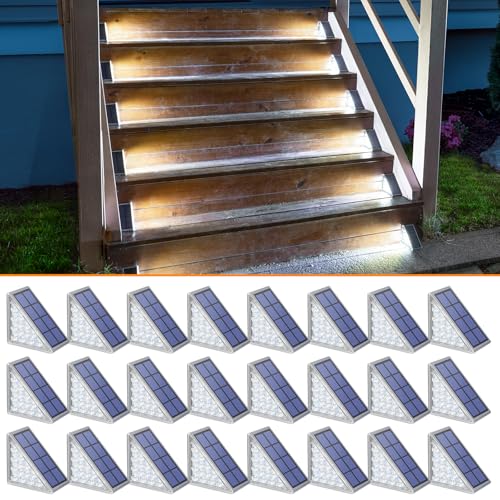 NIORSUN Solar Step Lights for Outside,24 Pack Cool White Solar Stair Lights Outdoor Waterproof IP67 Auto On Off,Solar Lights for Steps,Stair,Patio,Yard,Porch,Front Door,Sidewalk,Deck Decor