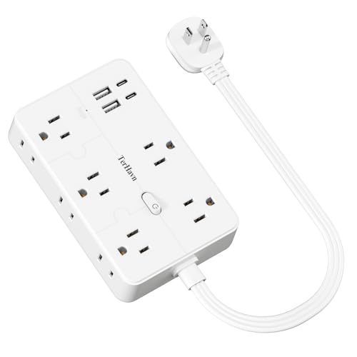 Surge Protector Power Strip 1 FT Flat Extension Cord ,10 AC Outlets & 4 USB Ports(5V/3.4A 17W), 1080J ,Wall Mountable Desktop Charging Station with Flat Plug for Office Supplies and Home, White