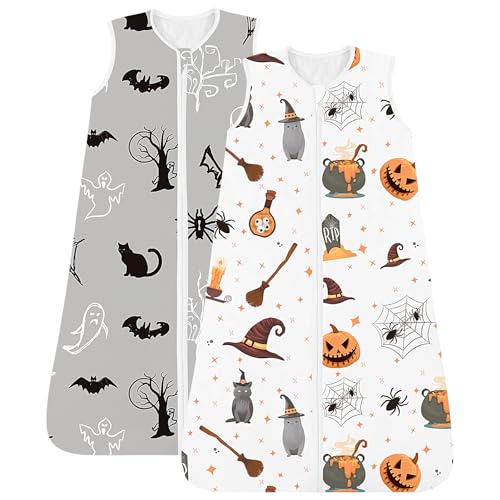 TOTCHILL Halloween Baby Sleep Sack 15-24 Months, 1.0 TOG Sleeping Bags with 1-way Zipper, Pumpkin, Black Cat, Bat, Witchy