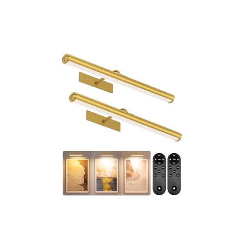 EZVALO Picture Lights for Wall, 16'' Rechargeable 6000mAh Painting Lights with Remote, Wireless Dimmable 3 Color Temps Art Lights for Gallery, Living Room, Hallway (Gold, 2Pack)