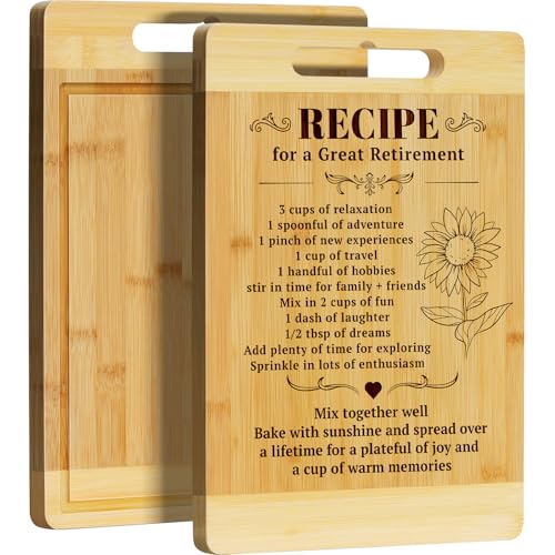 Kikcoin Retirement Gifts for Woman - Bamboo Cutting Boards for Kitchen, Retired Cutting Board Gift Leaving Job Gifts for Coworkers Happy Retirement Party Decorations, Large Cutting Board 13.8" X 9.8"