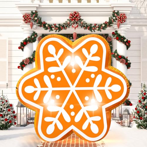 5FT Winter Inflatable Snowflake Gingerbread Blow-up Giant Gingerbread Snowflake Built-in 3 LED Lights for Winter Inflatables Outdoor Decorations Forzen Party Decor Supplies Yard Garden Lawn