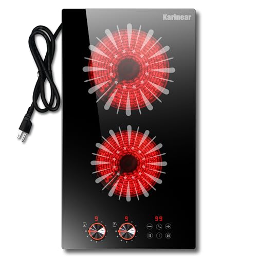 Karinear 110V Electric Cooktop 2 Burners, 12 Inch Electric Stove with Plug in, Countertop & Built-in Ceramic Stove Top, Knob and Sensor Touch Control, Multifunctional Radiant Stove
