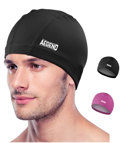 Aegend Fabric Swim Cap, Silicone Waterproof Layer - Breathable Cloth Swimming Cap, Keep Hair Dry with Hight Elasticity for Youth(8-16),3 Sizes to Choose (Black & Pink,Small)