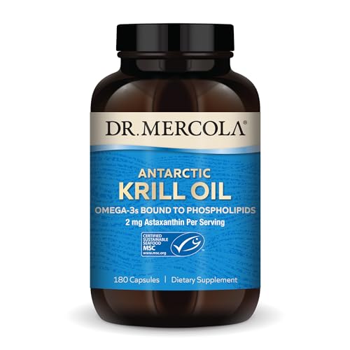 Dr. Mercola Antarctic Krill Oil - 1,000 mg - Omega-3 Supplement with EPA & DHA - Supports Brain, Heart, Joint & Immune Health - GMO-Free, Gluten-Free & Soy-Free - 180 Capsules (90 Servings)
