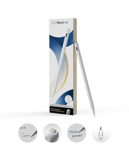eiP Pencil X for iPad 2018-2025, Spare Alloy Tip, Anti-Skip Tip Signal Tuning, 10-hr Battery, Magnetic, Custom Shortcuts, for iPad A16/11-7th Gen, Pro 11/12.9/13 Inch, Air M3/M2/5-3th, Mini 7/6/5th